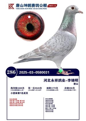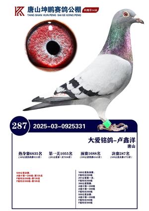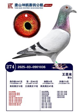 唐山坤鹏2025年获奖鸽照片