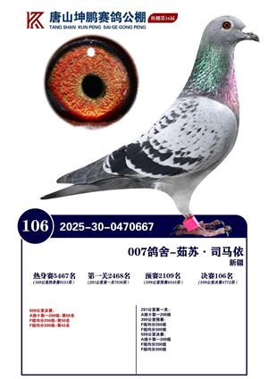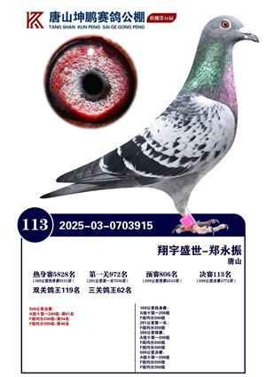 唐山坤鹏2025年获奖鸽照片