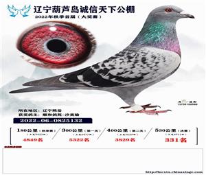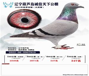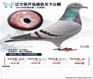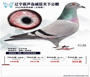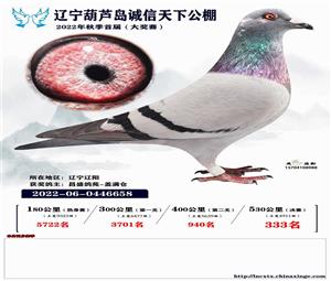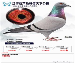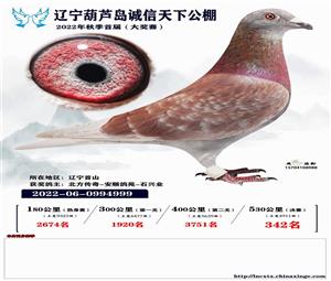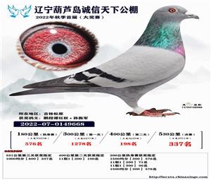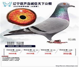 辽宁葫芦岛诚信天下公棚获奖鸽照片(1-700名)