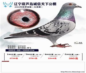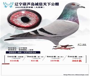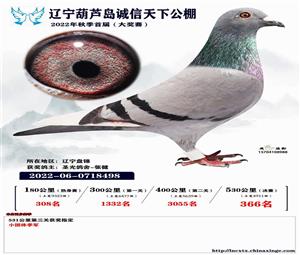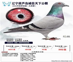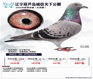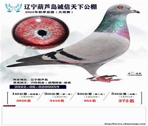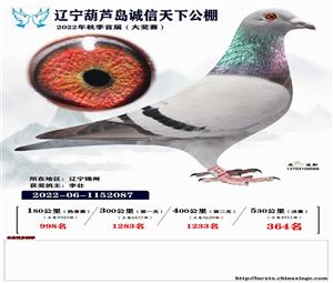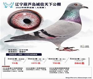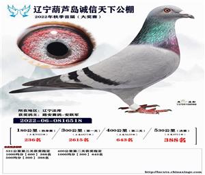 辽宁葫芦岛诚信天下公棚获奖鸽照片(1-700名)