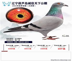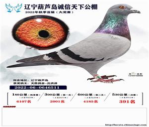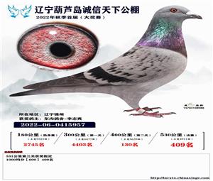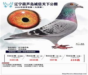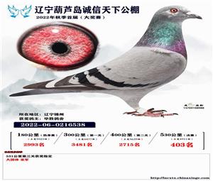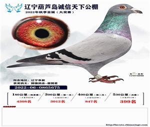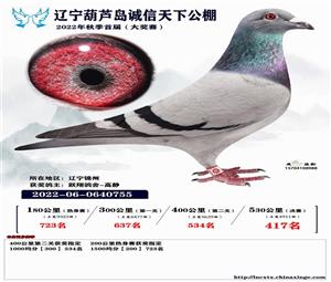 辽宁葫芦岛诚信天下公棚获奖鸽照片(1-700名)
