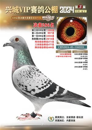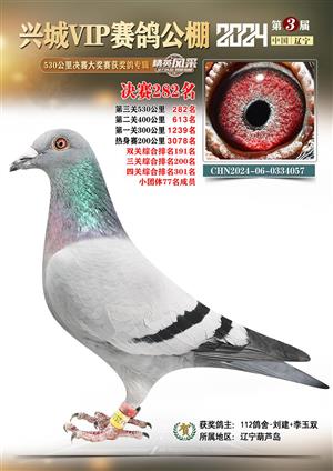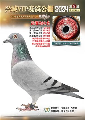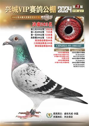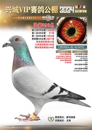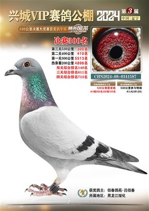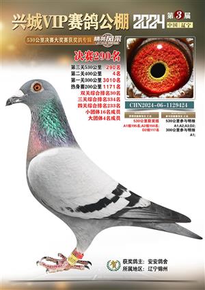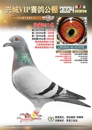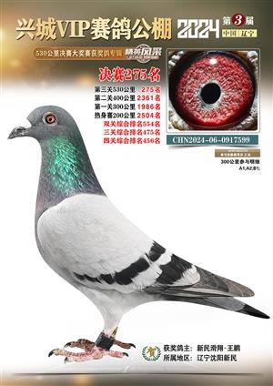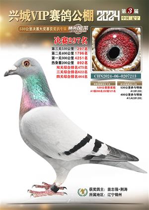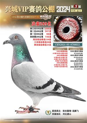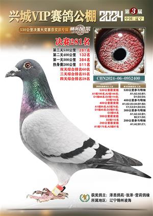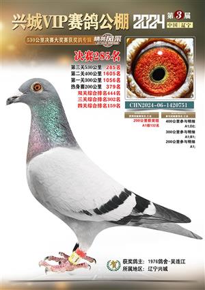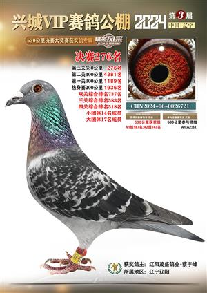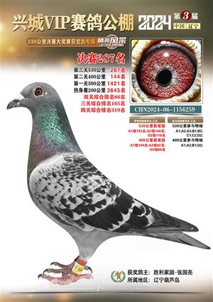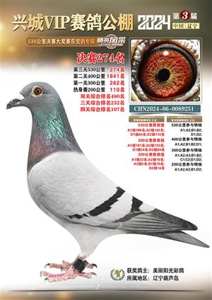 辽宁兴城VIP赛鸽公棚2024年530公里决赛1-800名获奖鸽照片