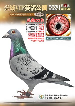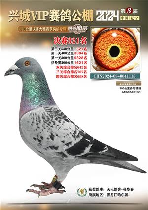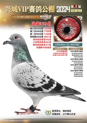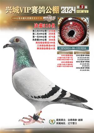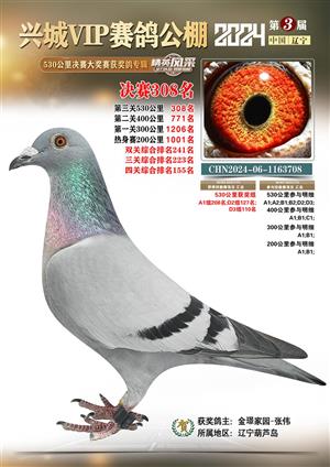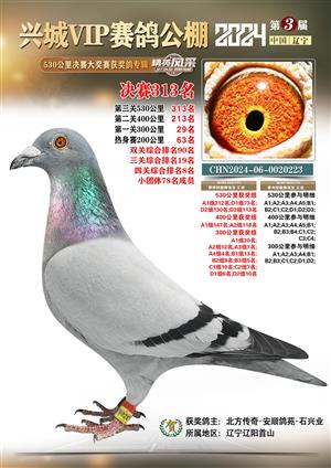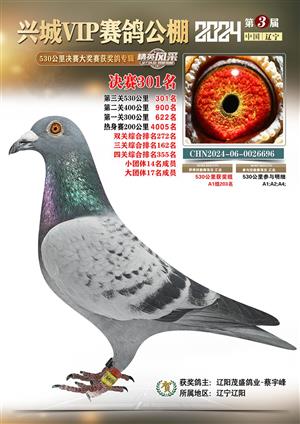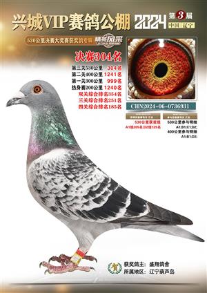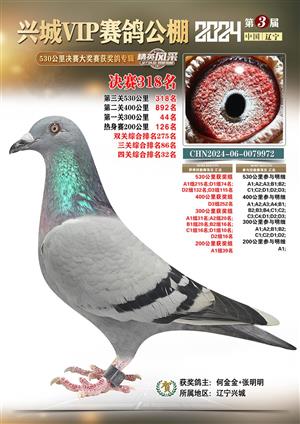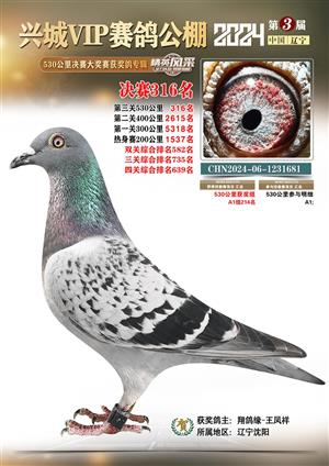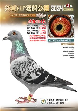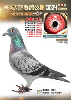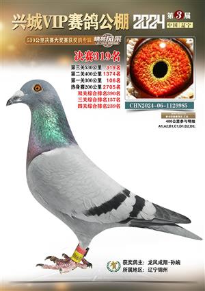 辽宁兴城VIP赛鸽公棚2024年530公里决赛1-800名获奖鸽照片
