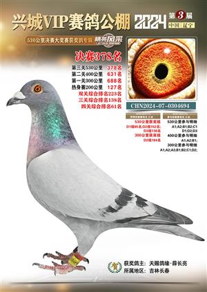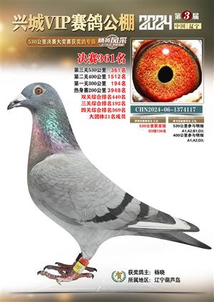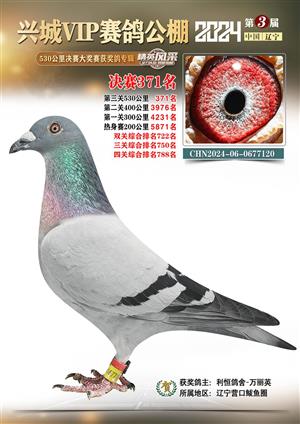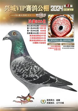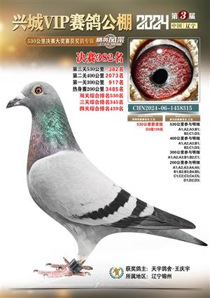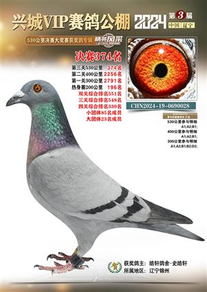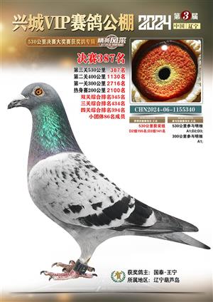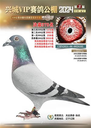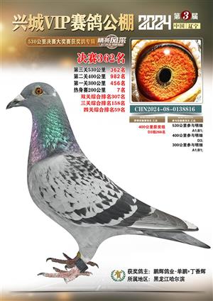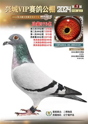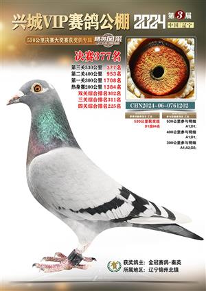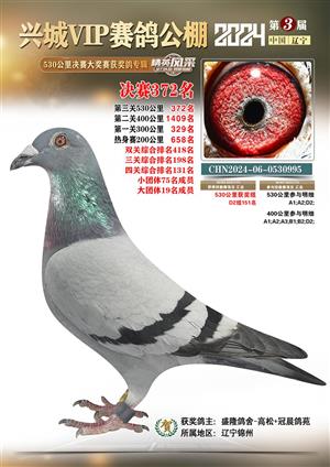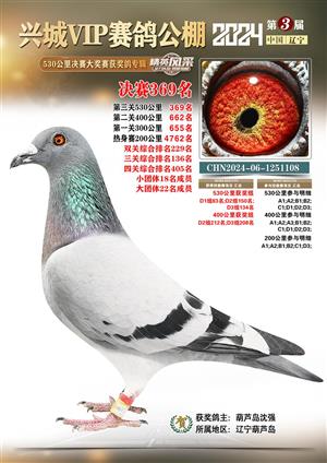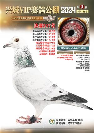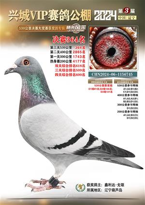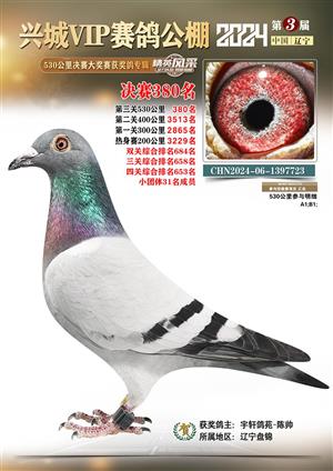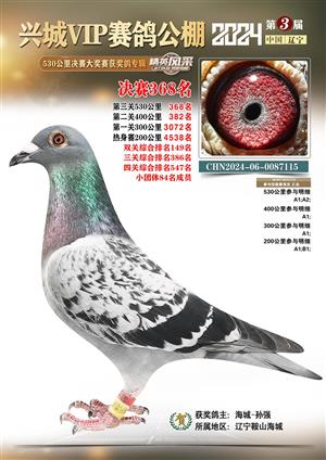 辽宁兴城VIP赛鸽公棚2024年530公里决赛1-800名获奖鸽照片