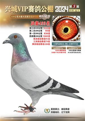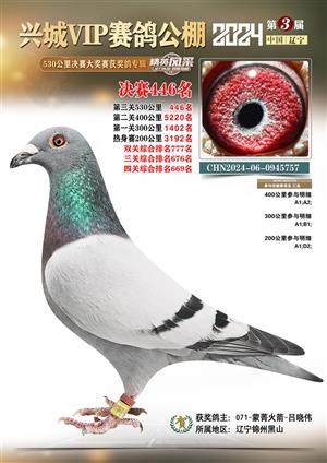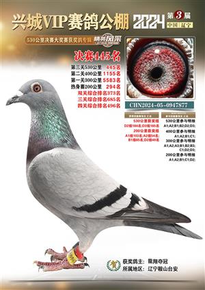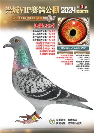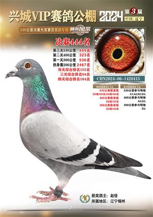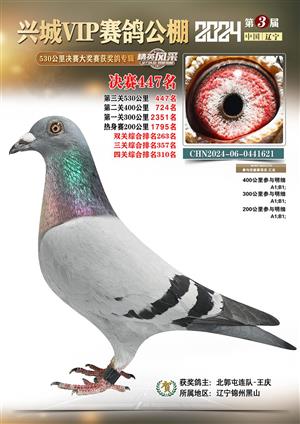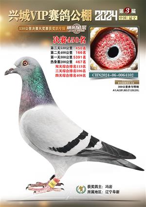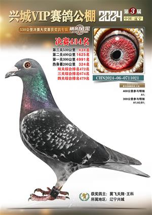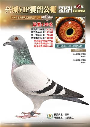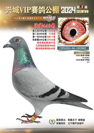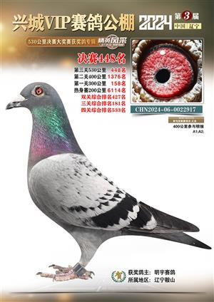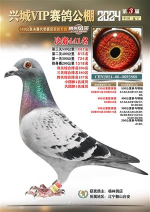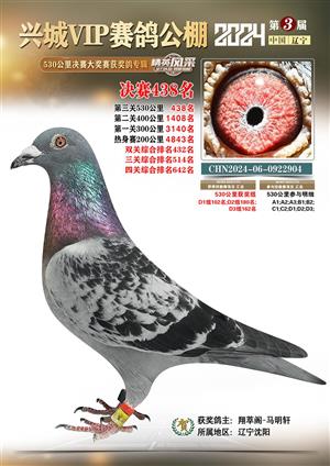 辽宁兴城VIP赛鸽公棚2024年530公里决赛1-800名获奖鸽照片