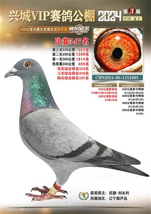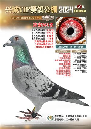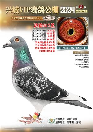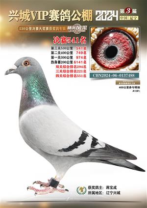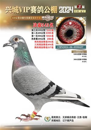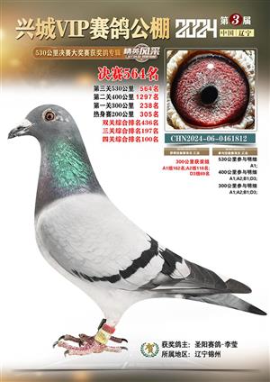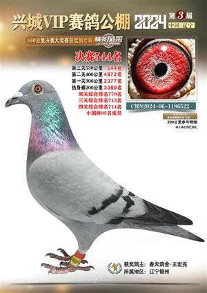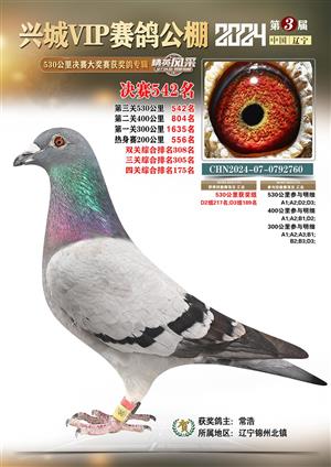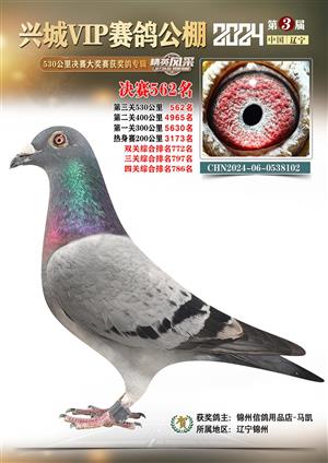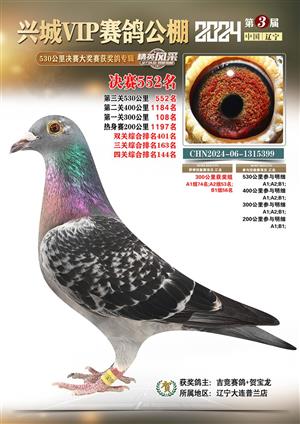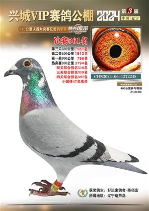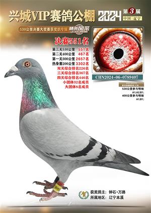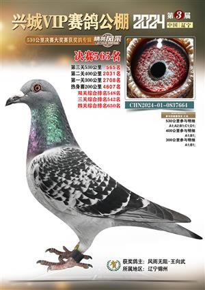 辽宁兴城VIP赛鸽公棚2024年530公里决赛1-800名获奖鸽照片