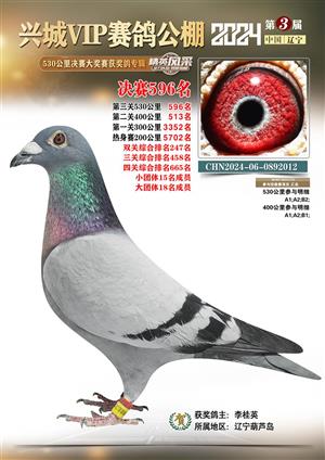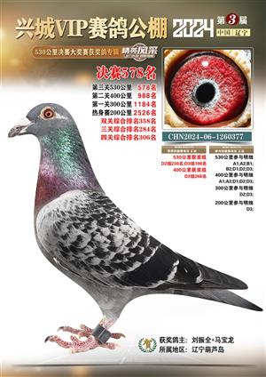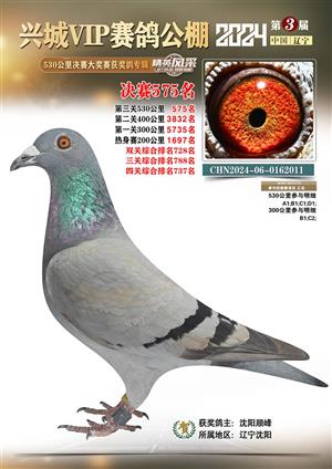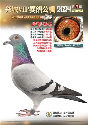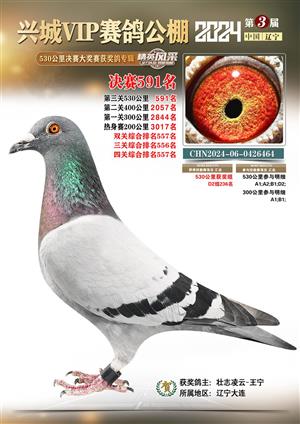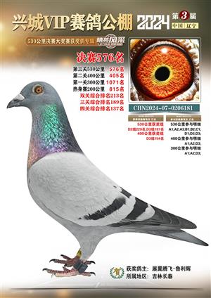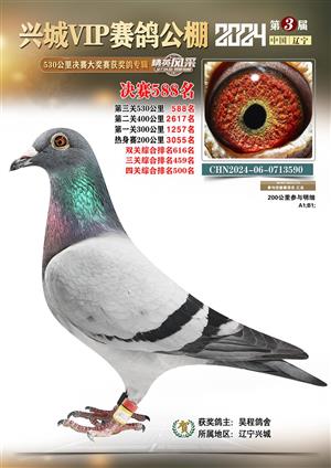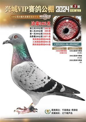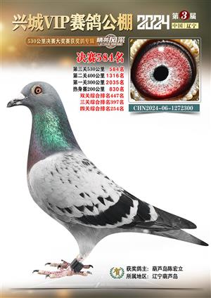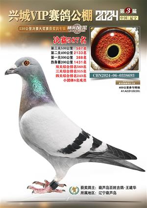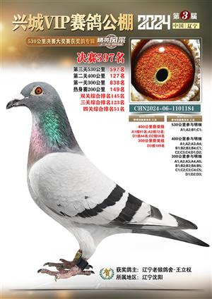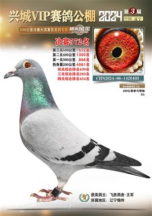 辽宁兴城VIP赛鸽公棚2024年530公里决赛1-800名获奖鸽照片