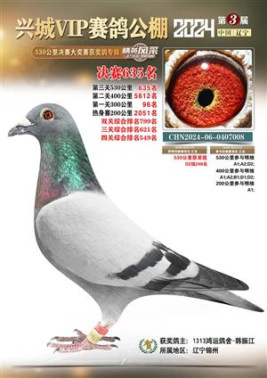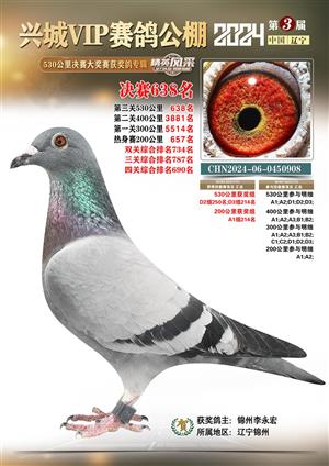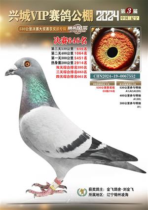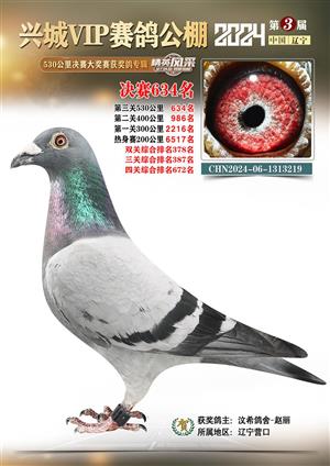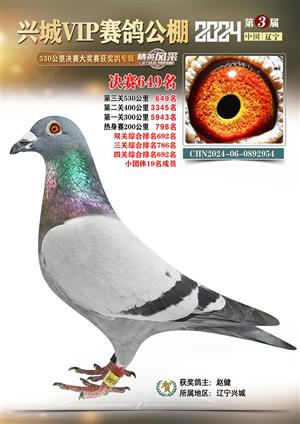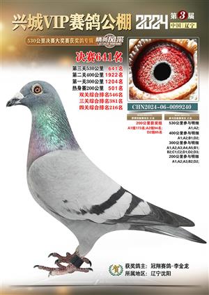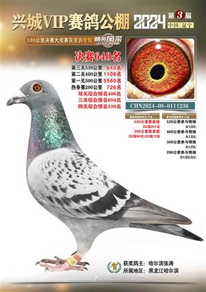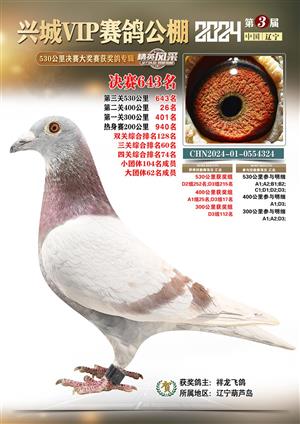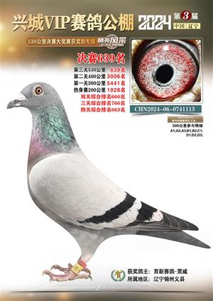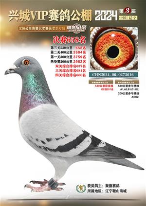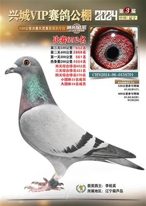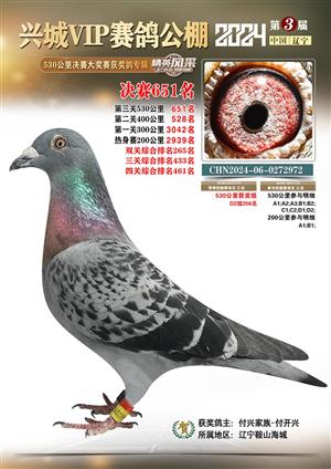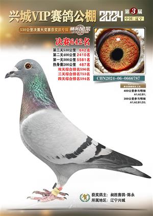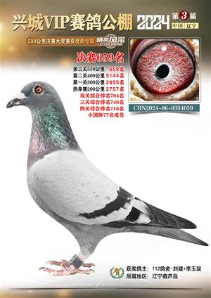 辽宁兴城VIP赛鸽公棚2024年530公里决赛1-800名获奖鸽照片