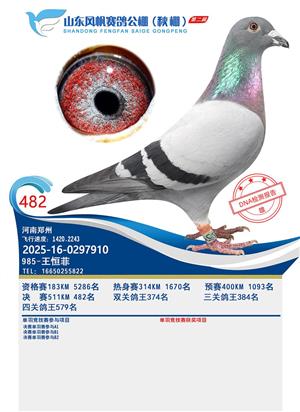 山东风帆赛鸽公棚(秋棚)2025年第二届获奖鸽照片