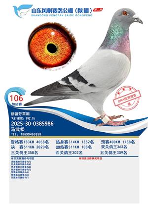山东风帆赛鸽公棚(秋棚)2025年第二届加站赛获奖鸽照片