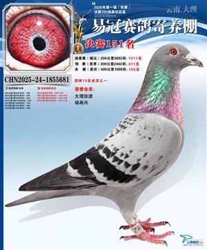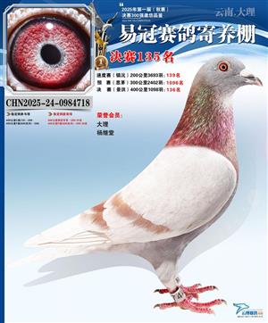 云南易冠赛鸽寄养棚2025年秋季决赛获奖鸽