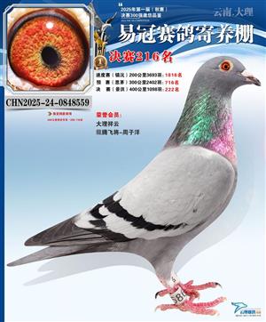 云南易冠赛鸽寄养棚2025年秋季决赛获奖鸽