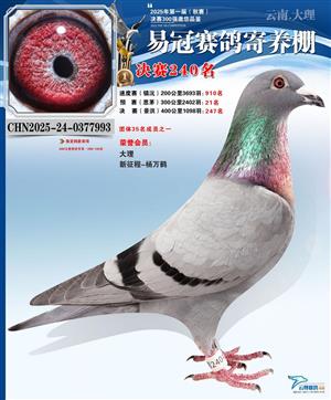 云南易冠赛鸽寄养棚2025年秋季决赛获奖鸽