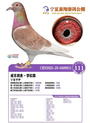 宁夏森翔赛鸽公棚2025年决赛获奖鸽照片