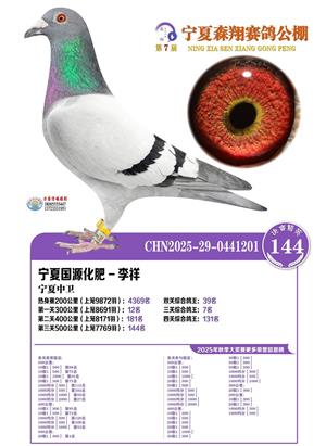 宁夏森翔赛鸽公棚2025年决赛获奖鸽照片