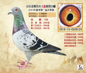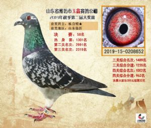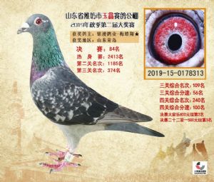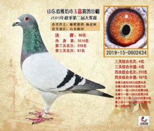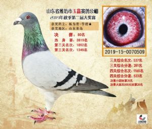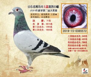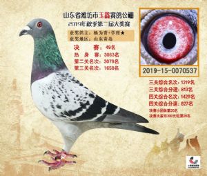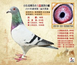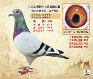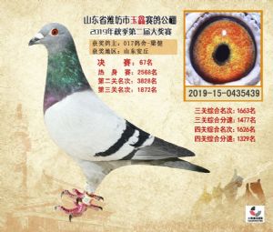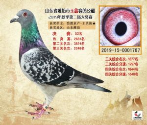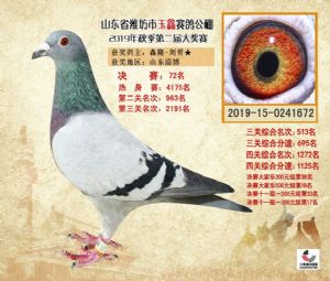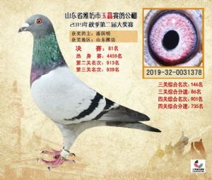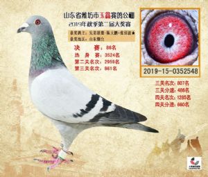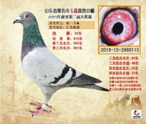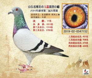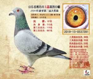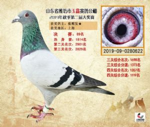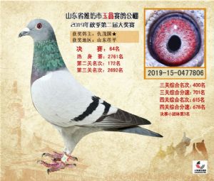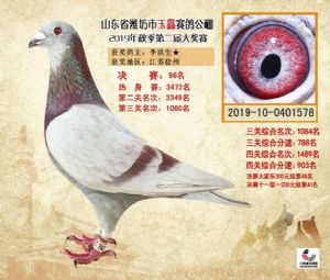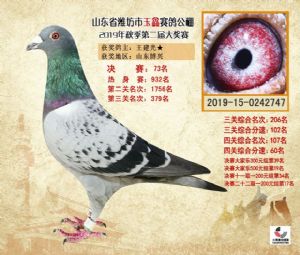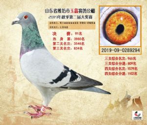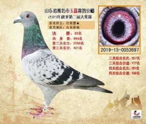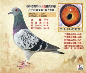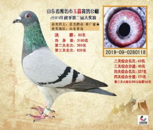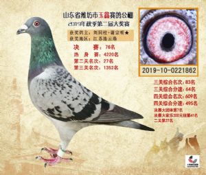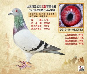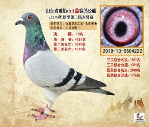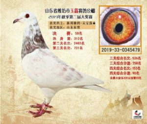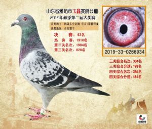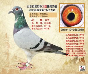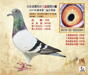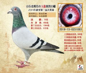 潍坊市玉鑫赛鸽公棚2019年获奖鸽照片欣赏(1-500名)