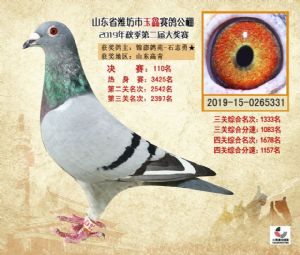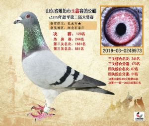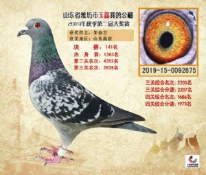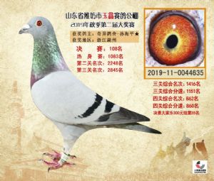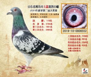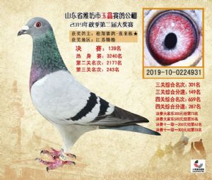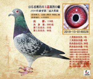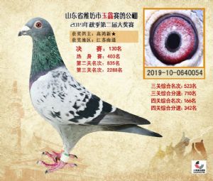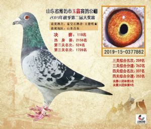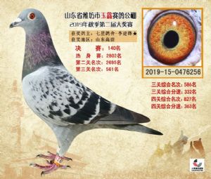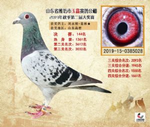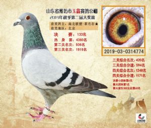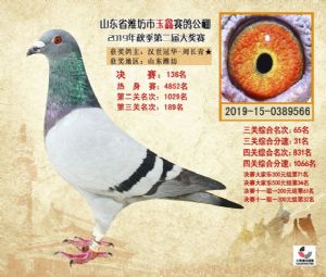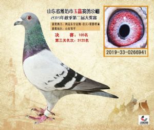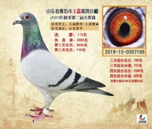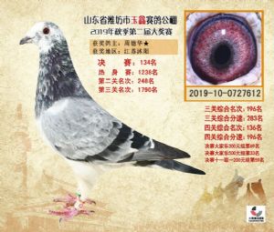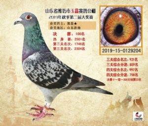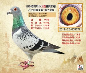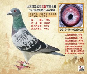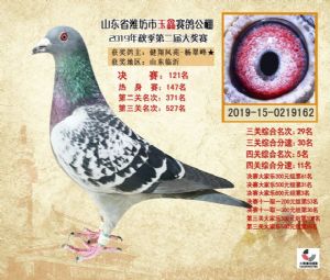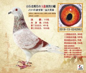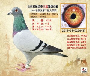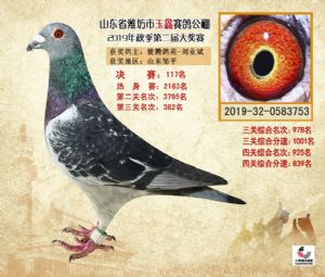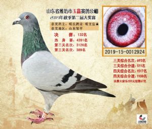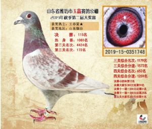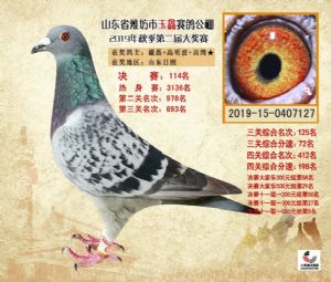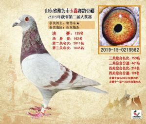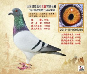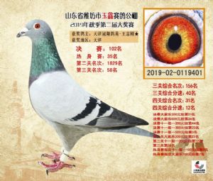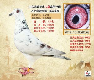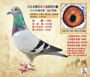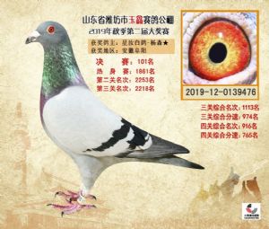 潍坊市玉鑫赛鸽公棚2019年获奖鸽照片欣赏(1-500名)