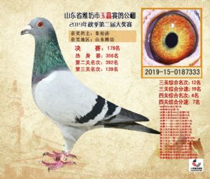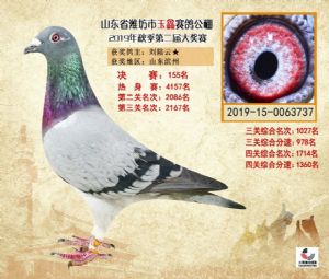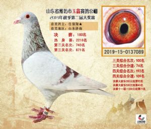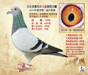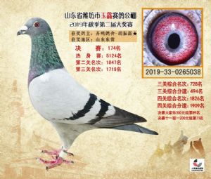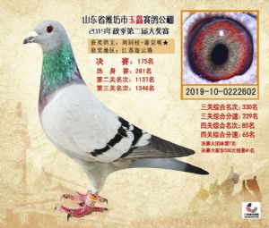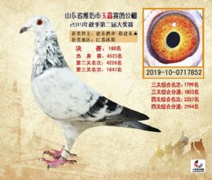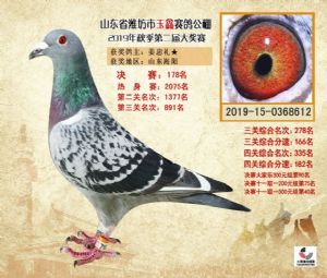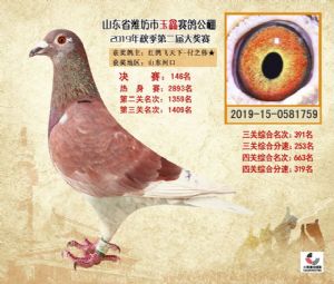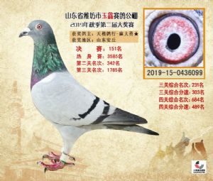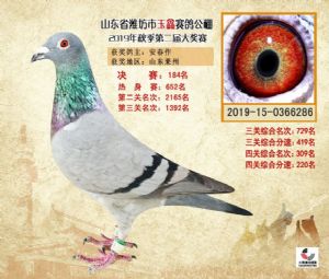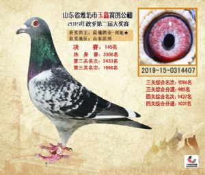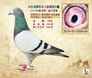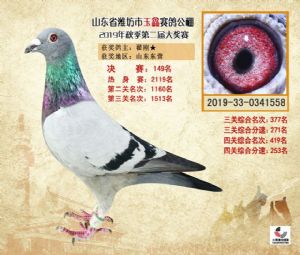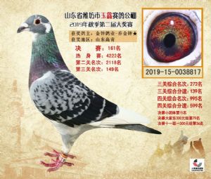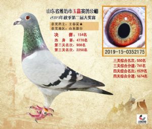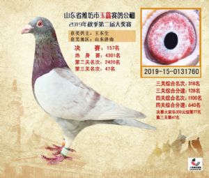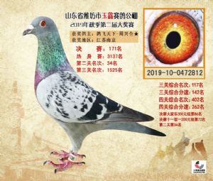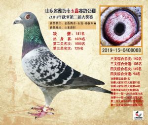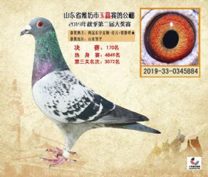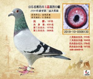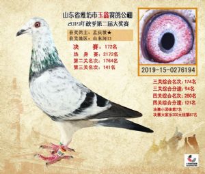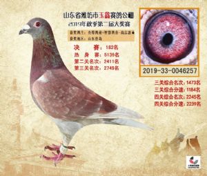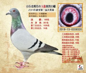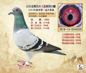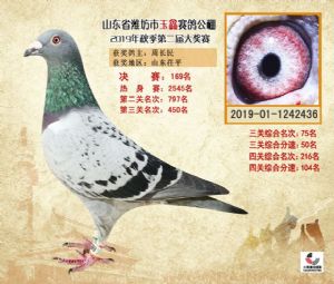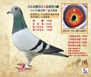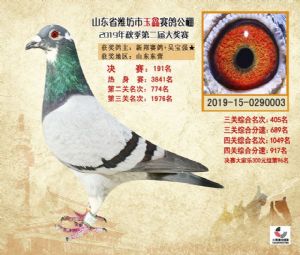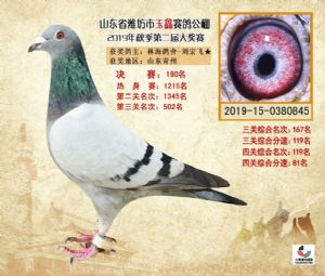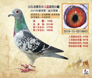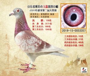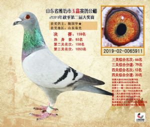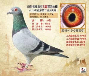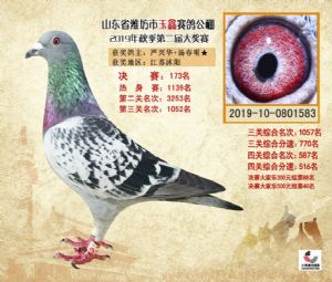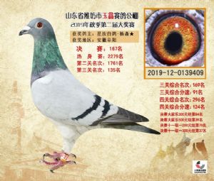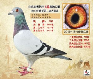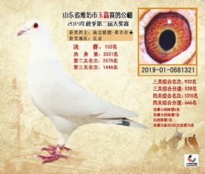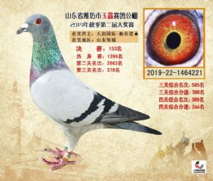 潍坊市玉鑫赛鸽公棚2019年获奖鸽照片欣赏(1-500名)