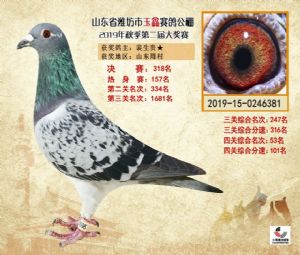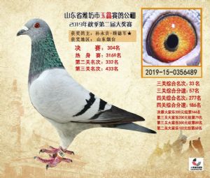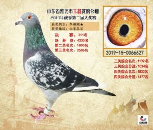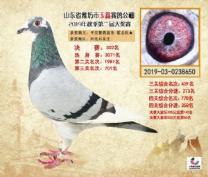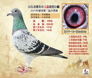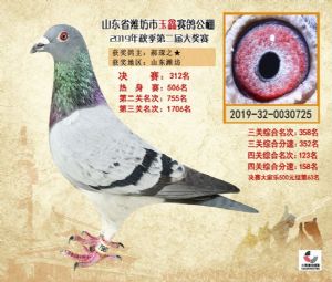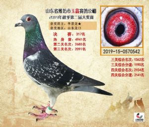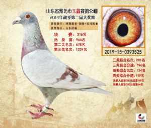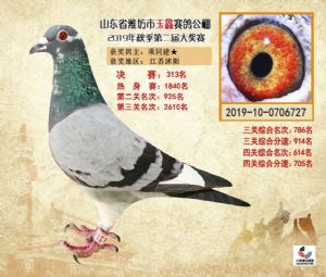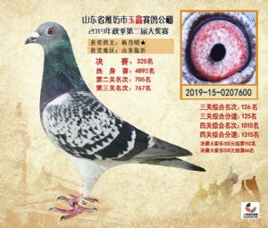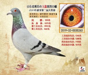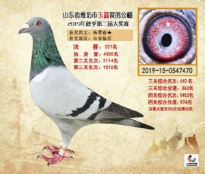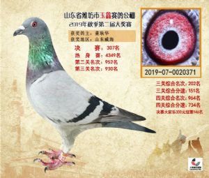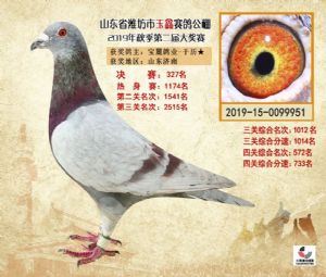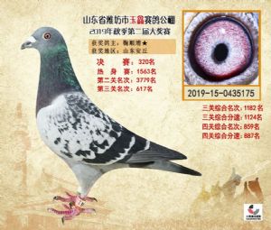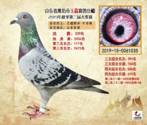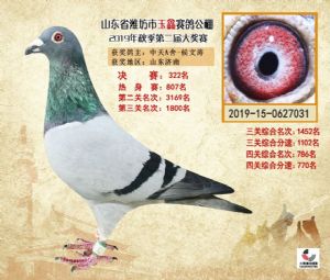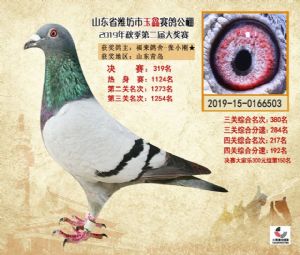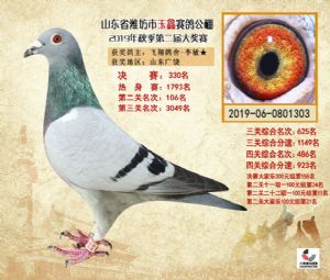 潍坊市玉鑫赛鸽公棚2019年获奖鸽照片欣赏(1-500名)