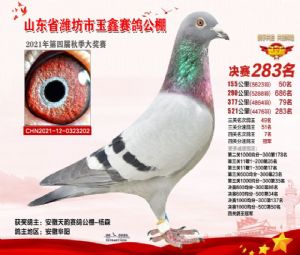 2021年第四届秋季大奖赛获奖鸽照片(1-500名)