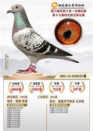 福建天宇鸽业 王沐宸