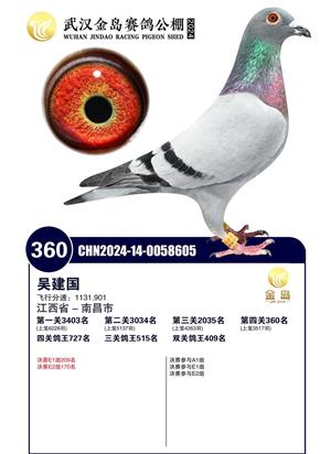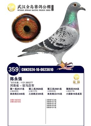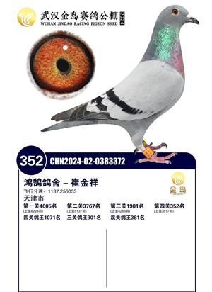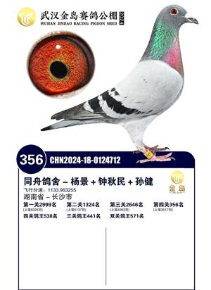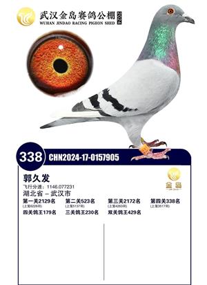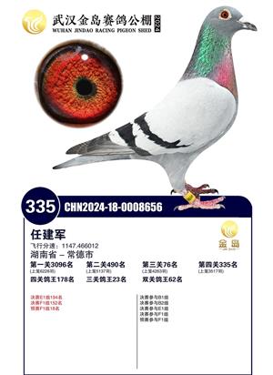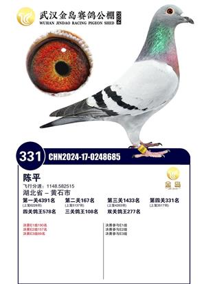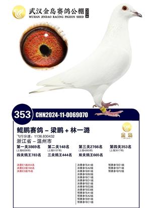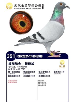 武汉金岛公棚2024获奖鸽冠军到500名照片