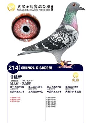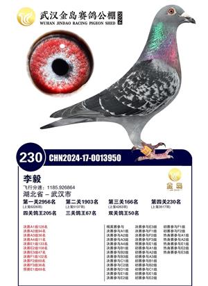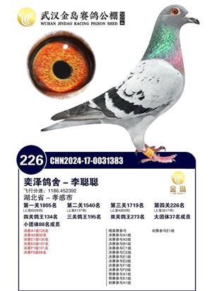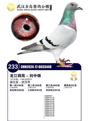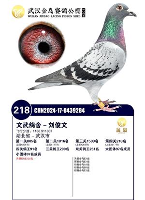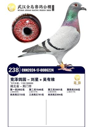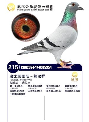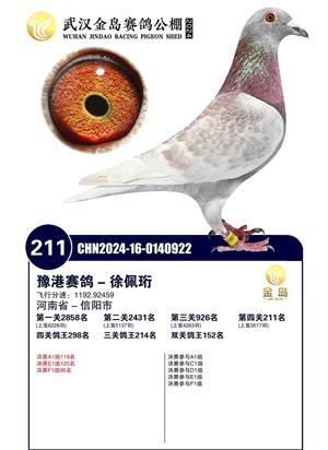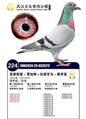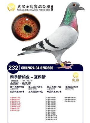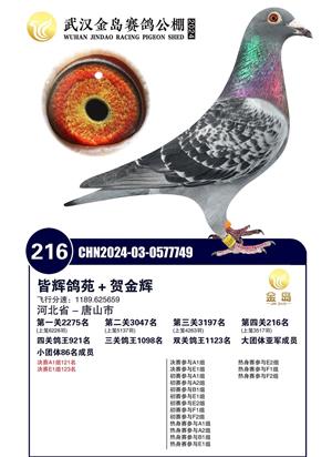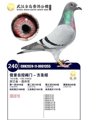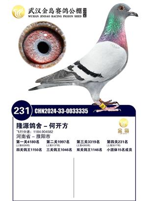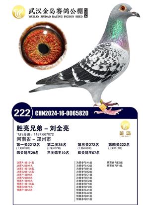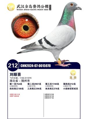 武汉金岛公棚2024获奖鸽冠军到500名照片