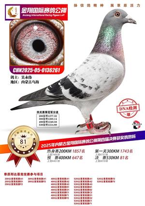 2025内蒙古金翔秋棚决赛前800名拍卖鸽赏析
