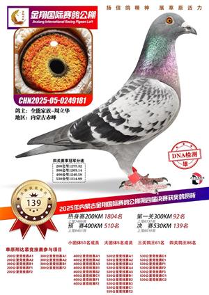 2025内蒙古金翔秋棚决赛前800名拍卖鸽赏析
