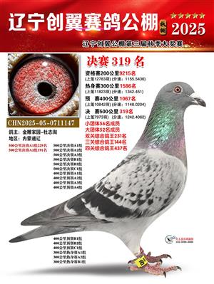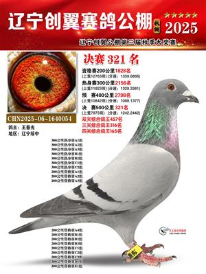 辽宁创翼赛鸽公棚(秋)500公里决赛获奖鸽照片