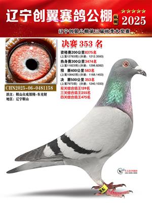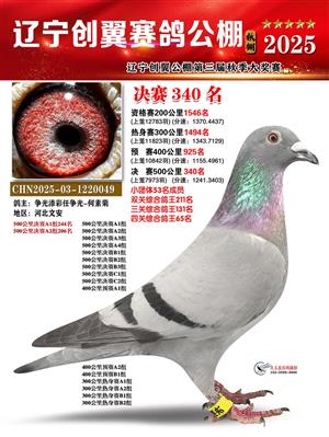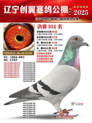 辽宁创翼赛鸽公棚(秋)500公里决赛获奖鸽照片