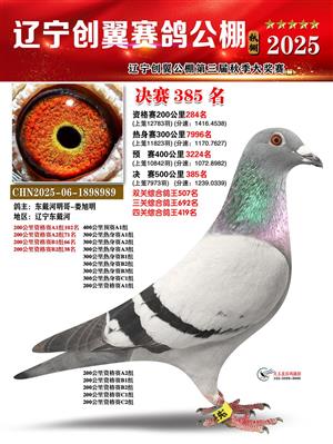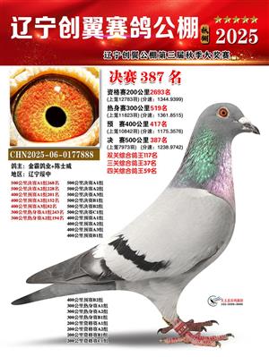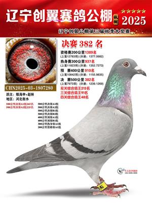 辽宁创翼赛鸽公棚(秋)500公里决赛获奖鸽照片