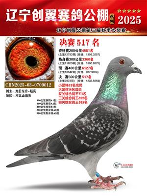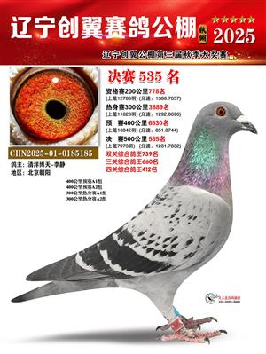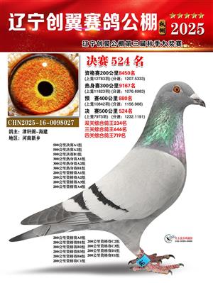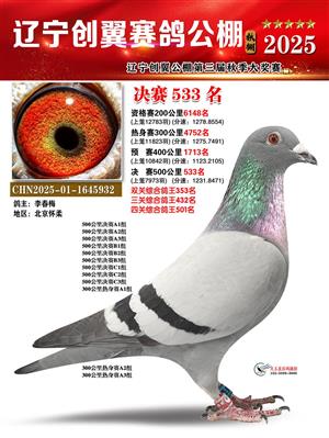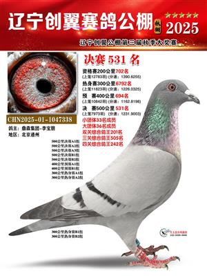 辽宁创翼赛鸽公棚(秋)500公里决赛获奖鸽照片