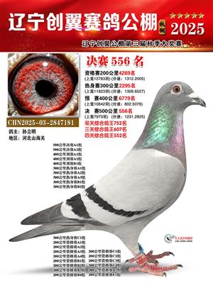 辽宁创翼赛鸽公棚(秋)500公里决赛获奖鸽照片