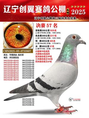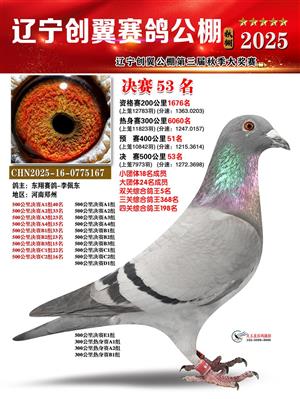 辽宁创翼赛鸽公棚(秋)500公里决赛获奖鸽照片