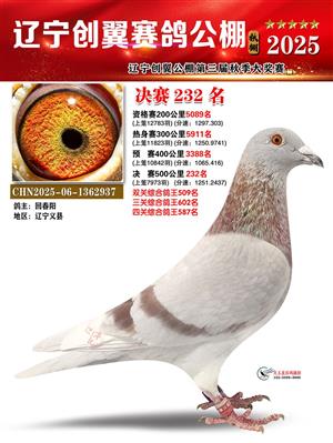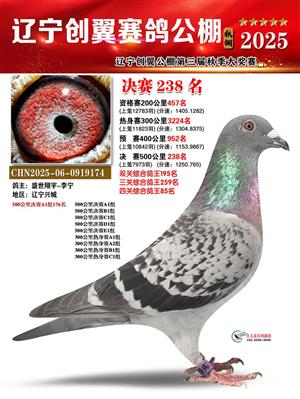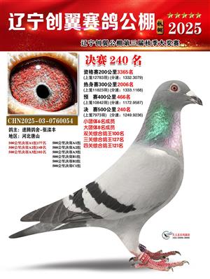 辽宁创翼赛鸽公棚(秋)500公里决赛获奖鸽照片