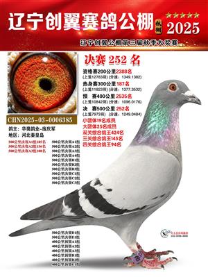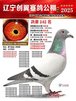辽宁创翼赛鸽公棚(秋)500公里决赛获奖鸽照片