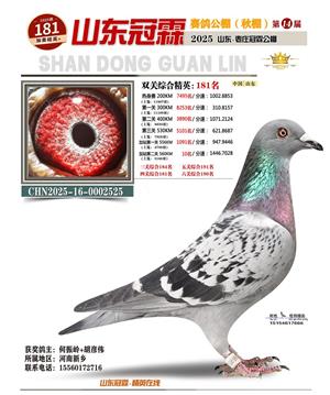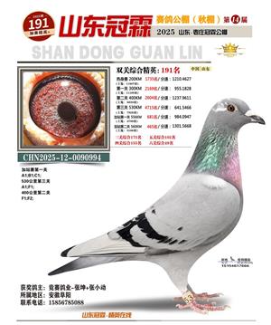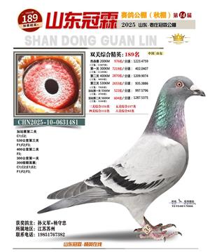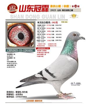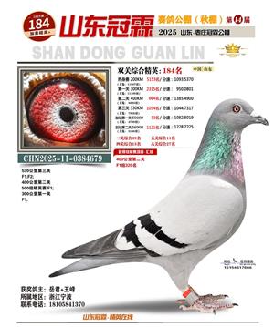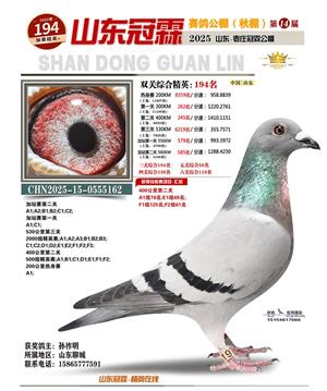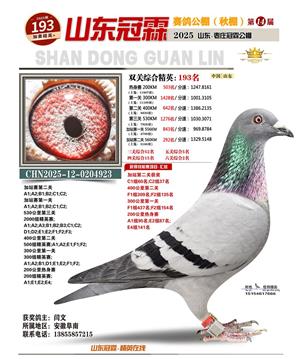 山东冠霖赛鸽公棚加站赛双关鸽王1-194名获奖鸽图片