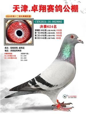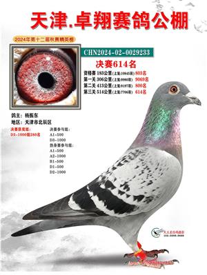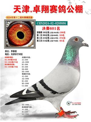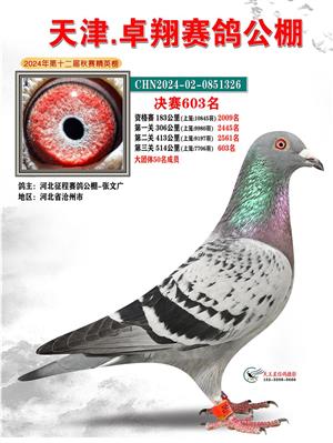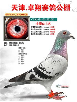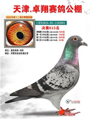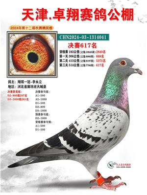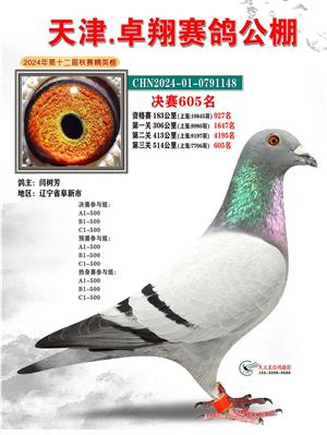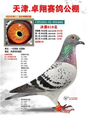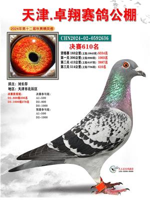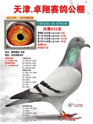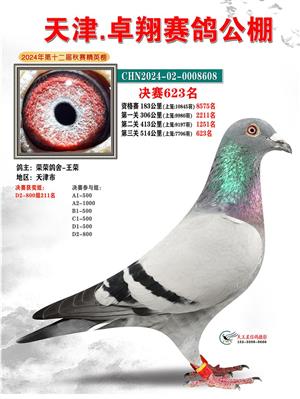 天津卓翔公棚2024年决赛获奖鸽照片