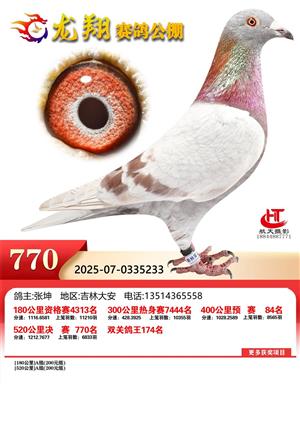 吉林龙翔公棚2025年秋季竞赛决赛1-800名获奖鸽照片