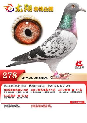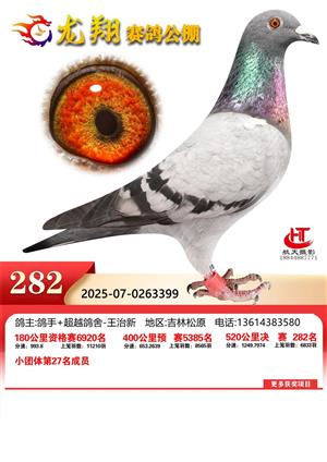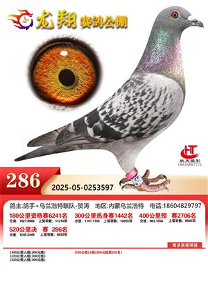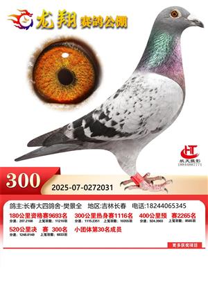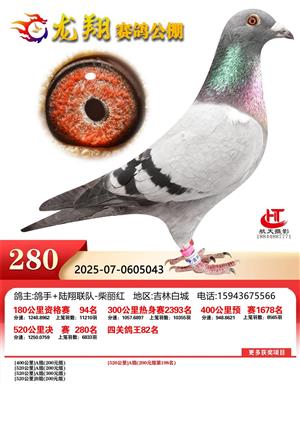 吉林龙翔公棚2025年秋季竞赛决赛1-800名获奖鸽照片