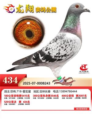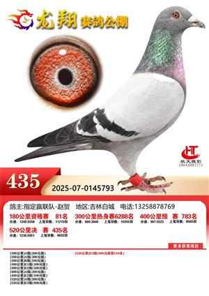 吉林龙翔公棚2025年秋季竞赛决赛1-800名获奖鸽照片