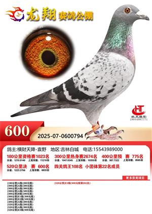 吉林龙翔公棚2025年秋季竞赛决赛1-800名获奖鸽照片
