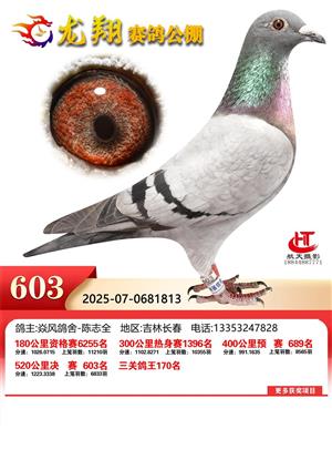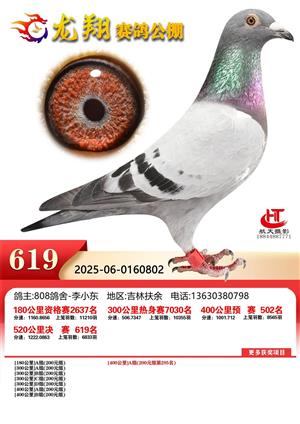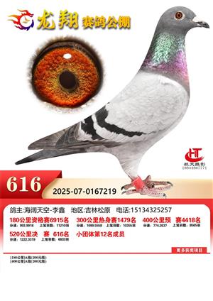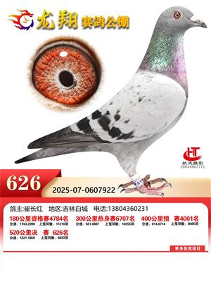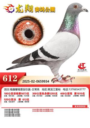 吉林龙翔公棚2025年秋季竞赛决赛1-800名获奖鸽照片