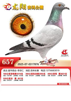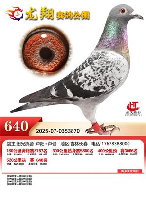 吉林龙翔公棚2025年秋季竞赛决赛1-800名获奖鸽照片