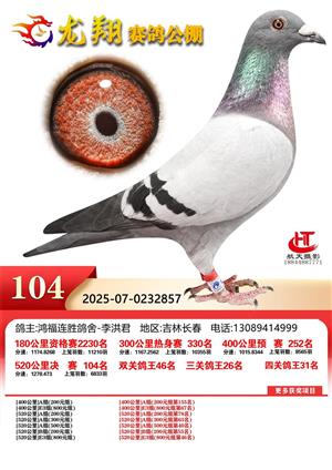 吉林龙翔公棚2025年秋季竞赛决赛1-800名获奖鸽照片