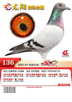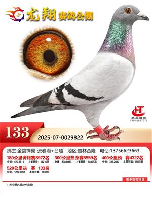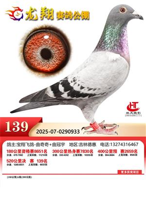 吉林龙翔公棚2025年秋季竞赛决赛1-800名获奖鸽照片