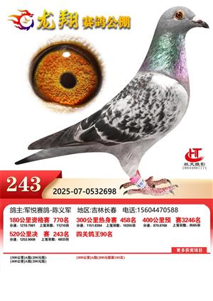 吉林龙翔公棚2025年秋季竞赛决赛1-800名获奖鸽照片
