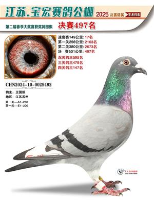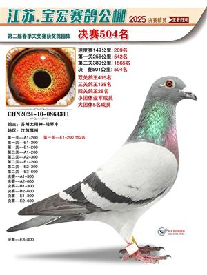 江苏宝宏春棚2025年获奖鸽照片赏析