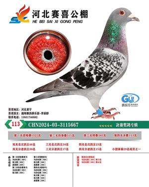 2025年赛喜公棚获奖鸽照片(1-1000名)